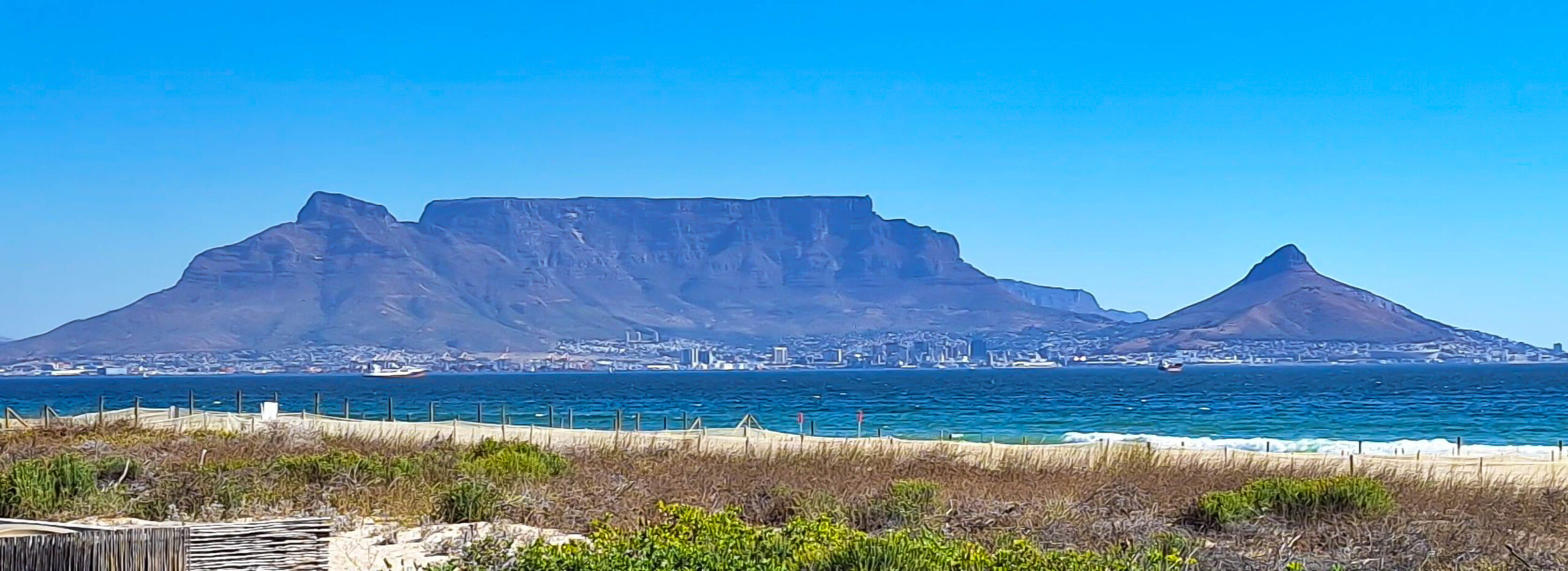 Von ca. 160 m Höhe über dem Meer, unterhalb des mächtigen Massivs des Heldergerbergs, eröffnet sich einem eine atemberaubende Aussicht auf die False Bay und die Hottentot Berge.