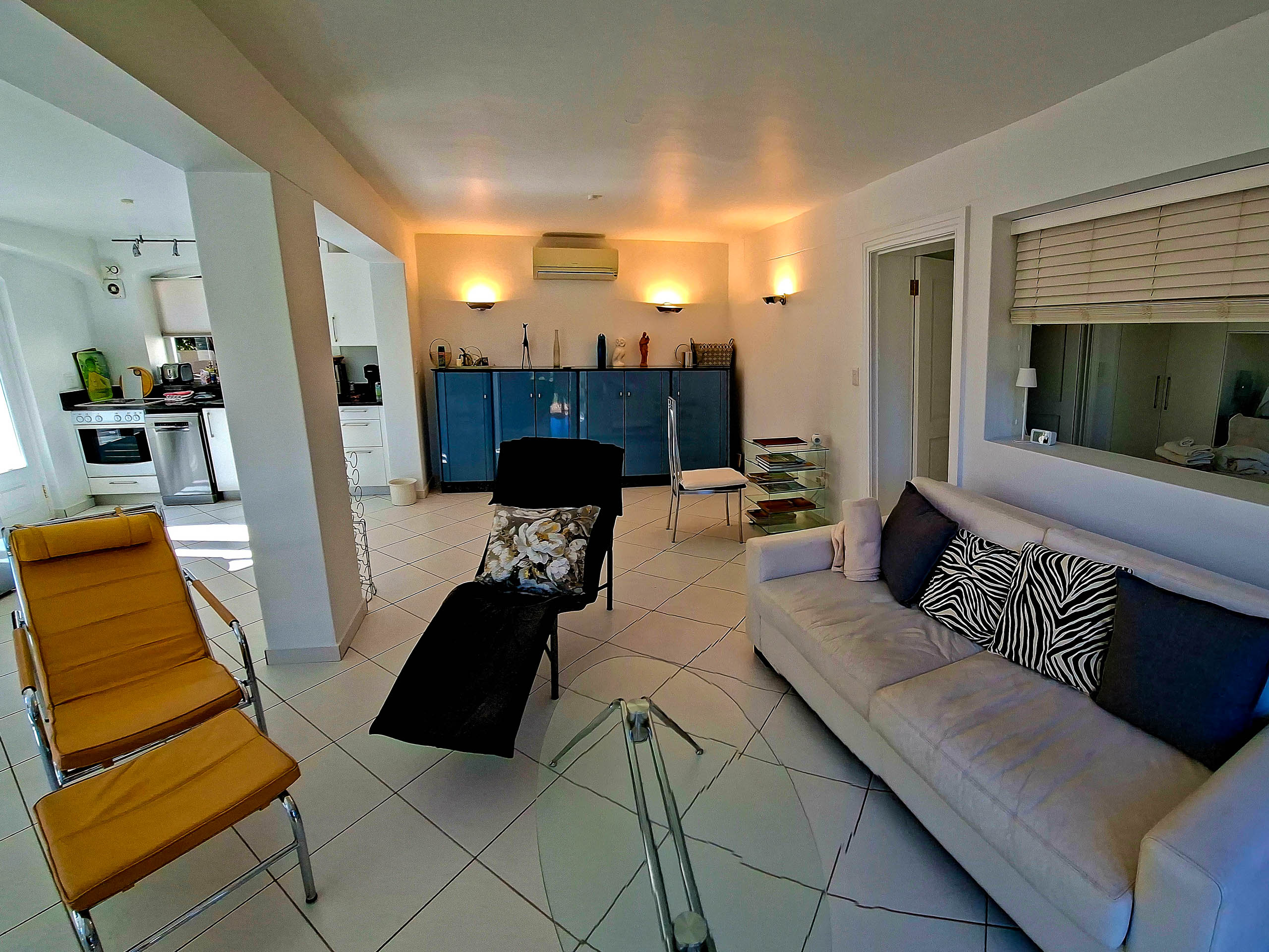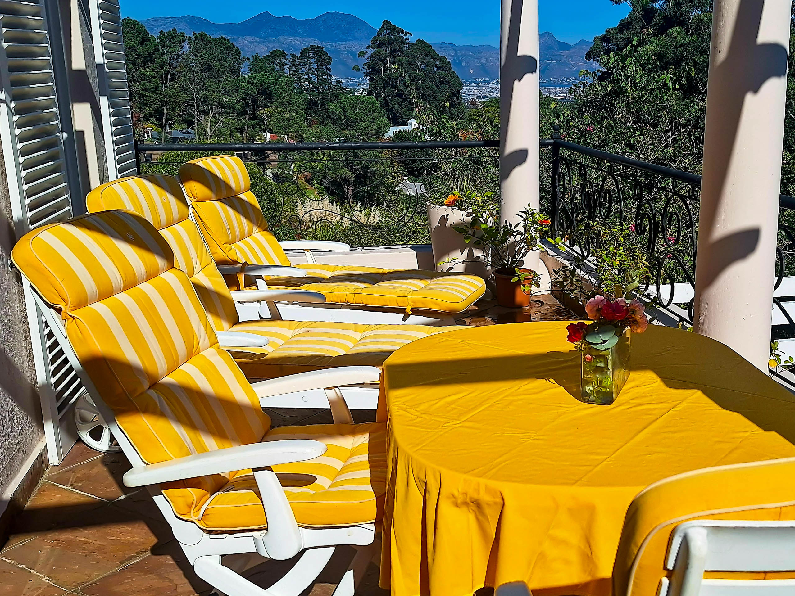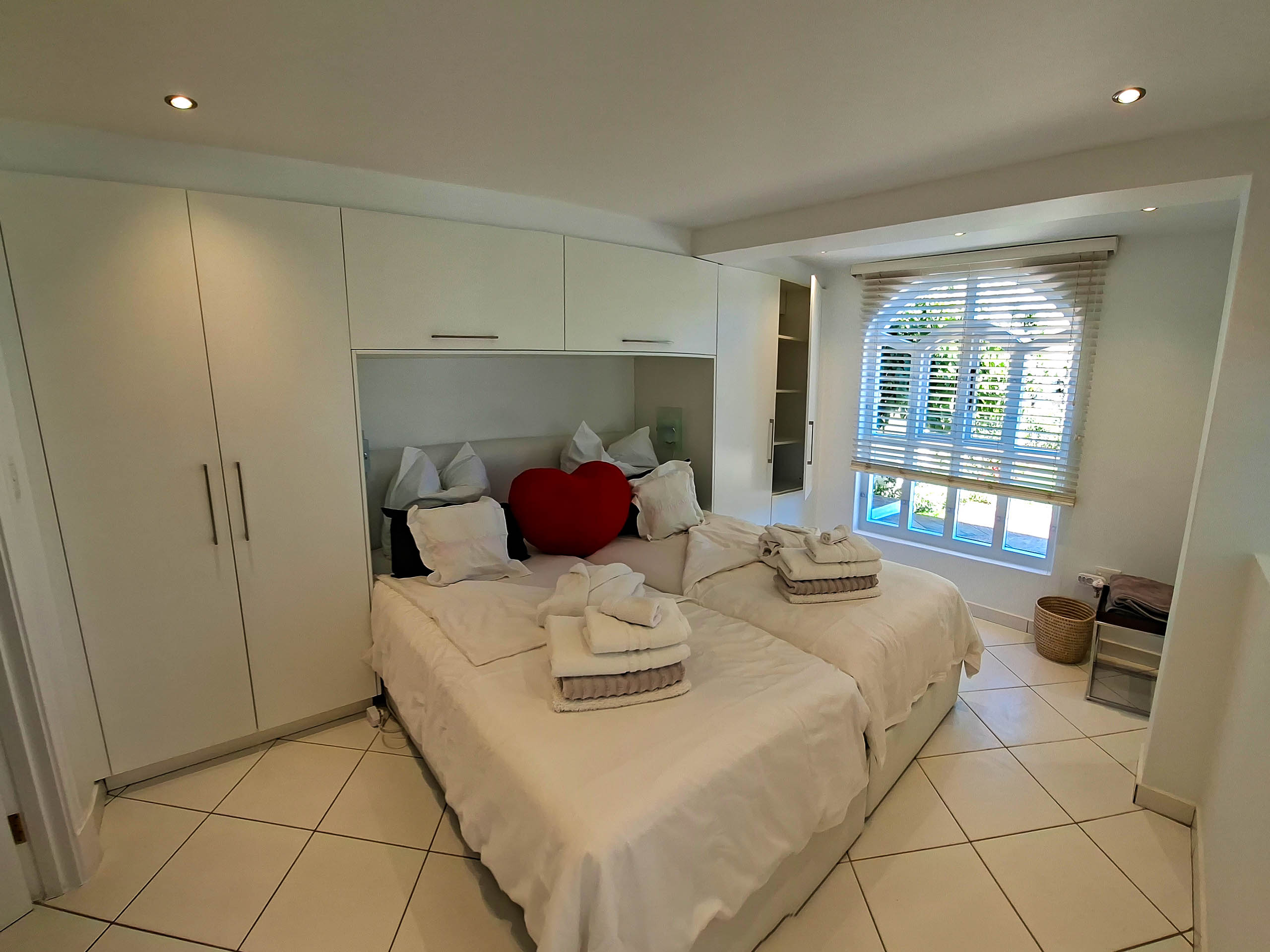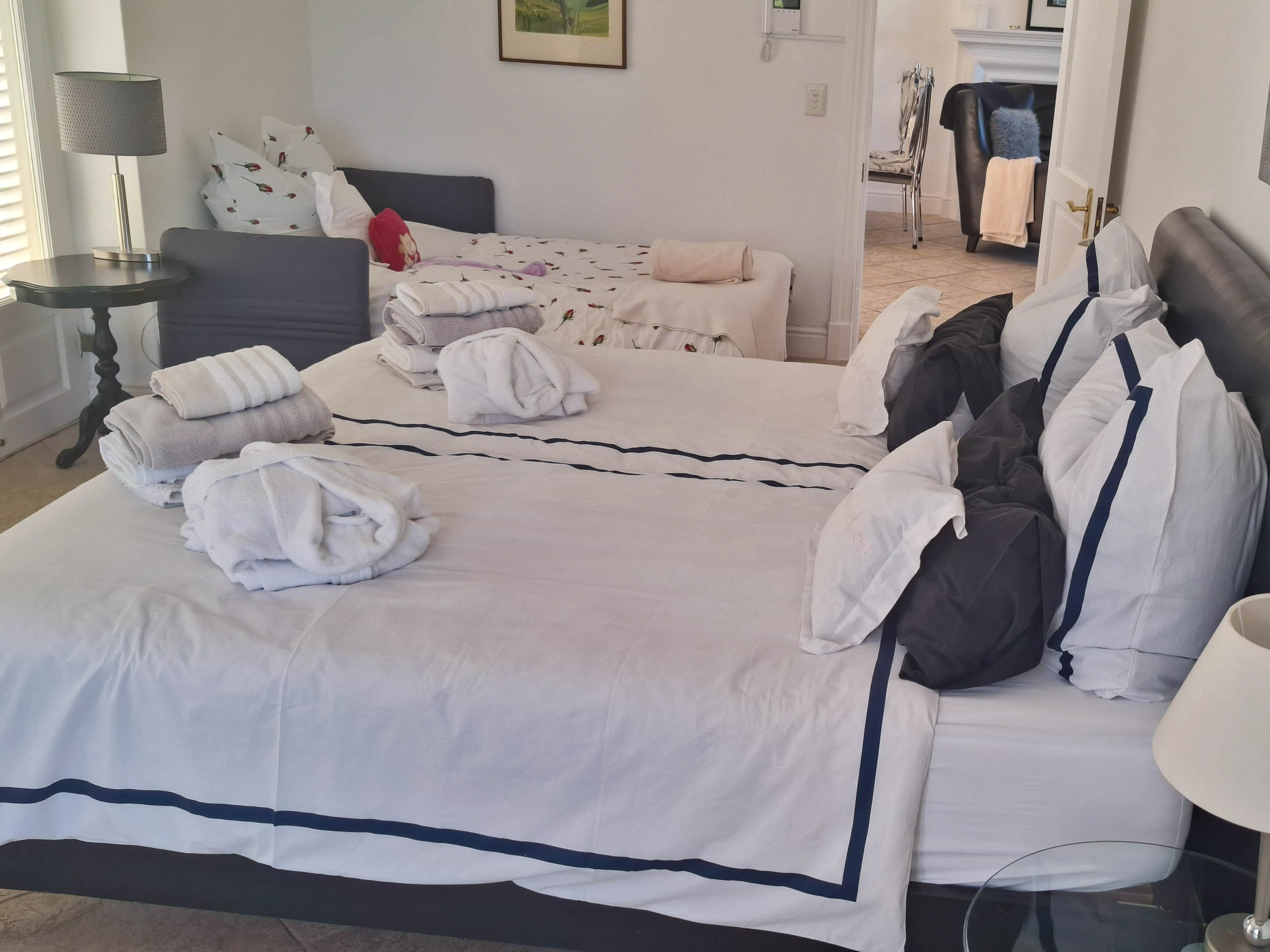 Unser 65 m² großes Familienappartement besteht aus einem geräumigen Wohn-/Esszimmer mit einem großen Schlafzimmer, einer zusätzlichen Ausziehcouch und einer kleinen Küche. Das Bad en Suite ist sehr groß, mit Dusche und Badewanne mit grandiosem Blick auf die False Bay.