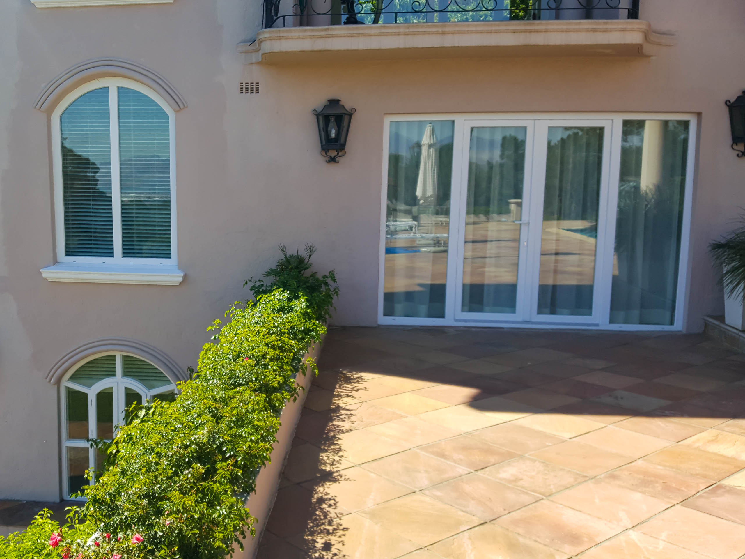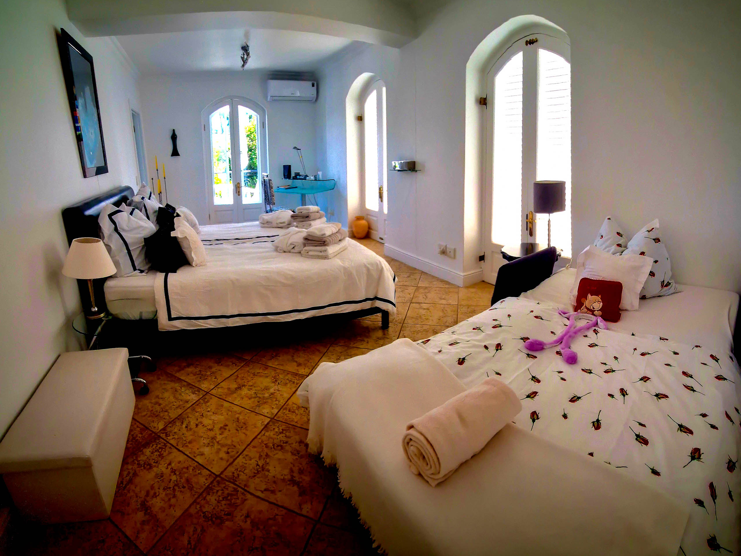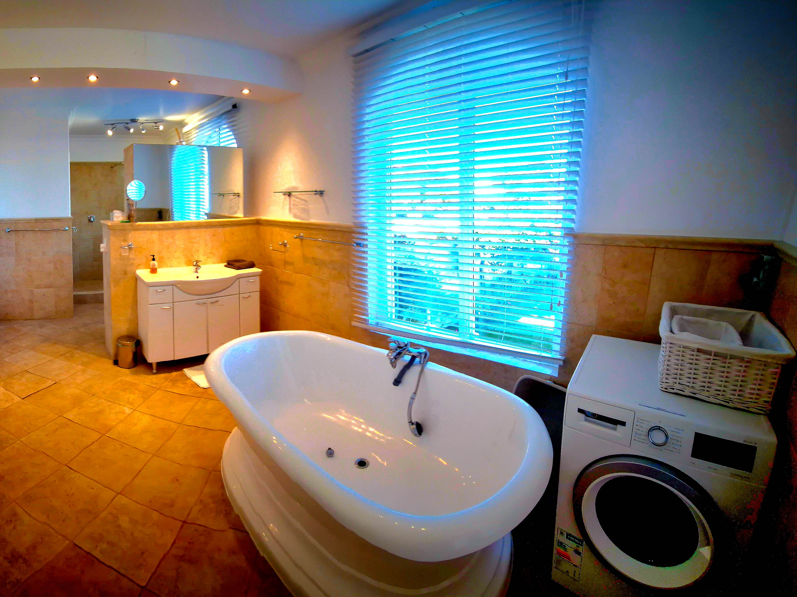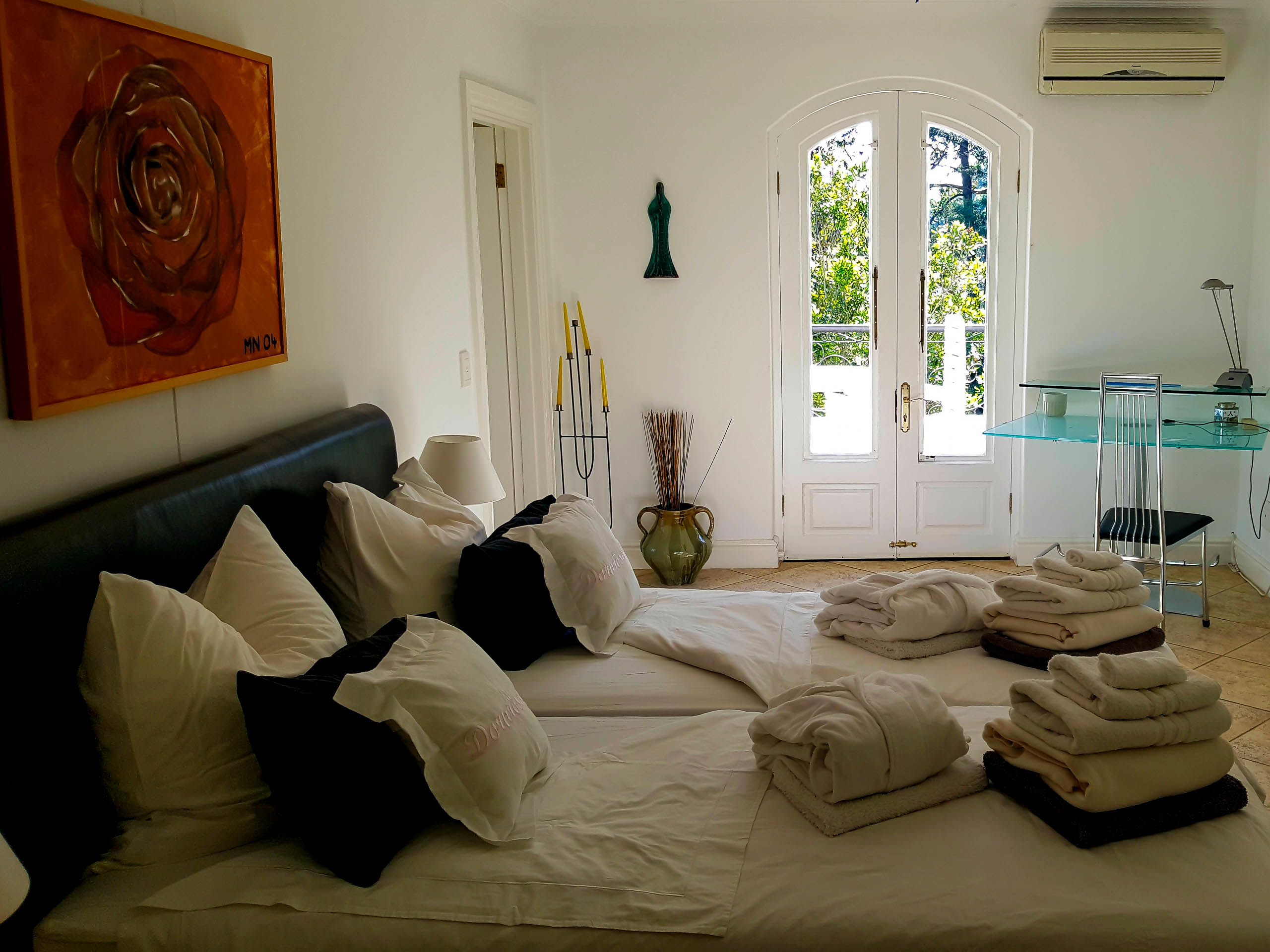 Unser 65 m² großes Familienappartement besteht aus einem geräumigen Wohn-/Esszimmer mit einem großen Schlafzimmer, einer zusätzlichen Ausziehcouch und einer kleinen Küche. Das Bad en Suite ist sehr groß, mit Dusche und Badewanne mit grandiosem Blick auf die False Bay.