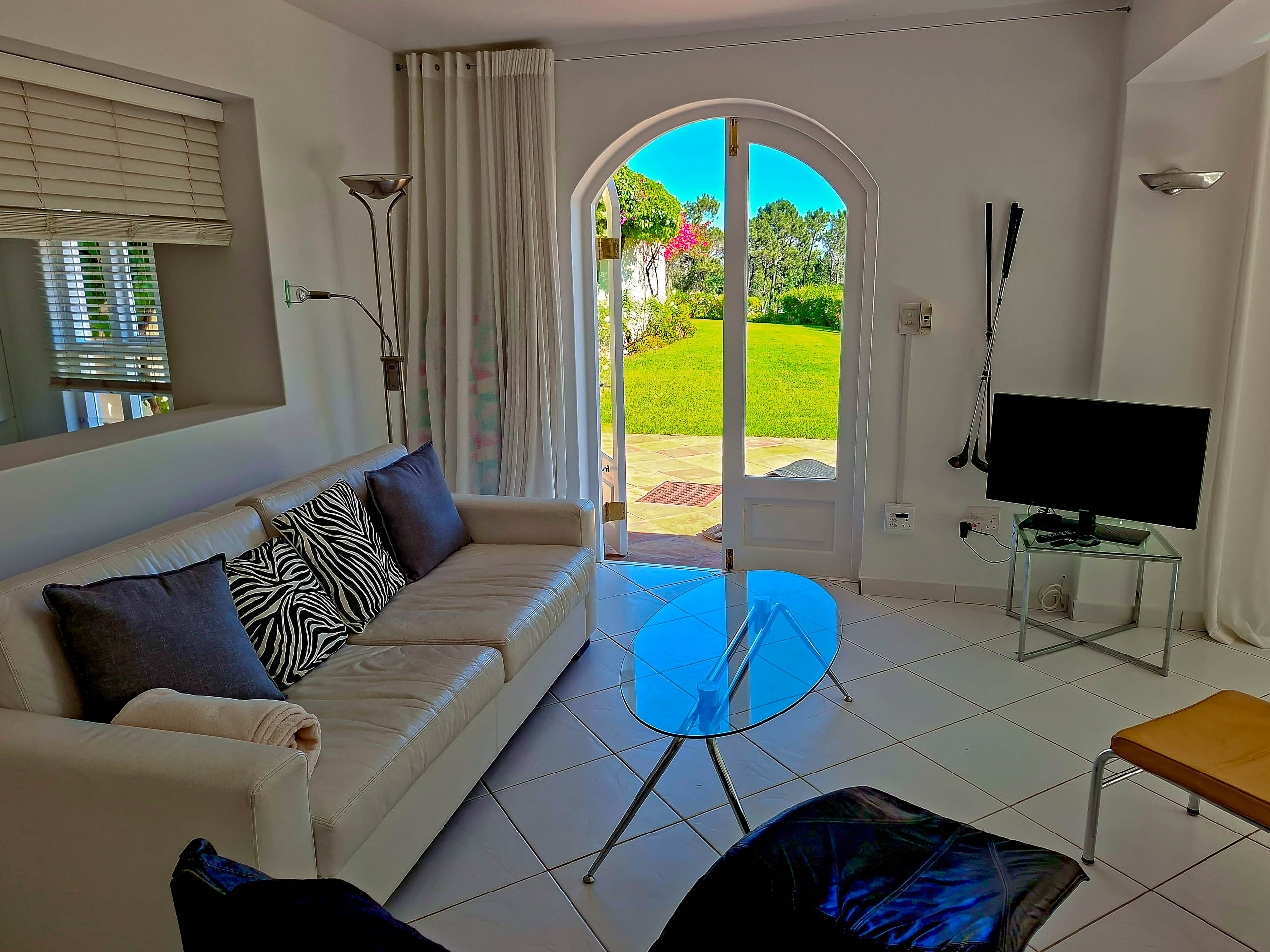 Unser 65 m² großes Apartment besteht aus einem geräumigen Wohn-/Esszimmer mit Küchenzeile, einem Schlafzimmer mit Bad en Suite und großzügigen Gartenterrassen.