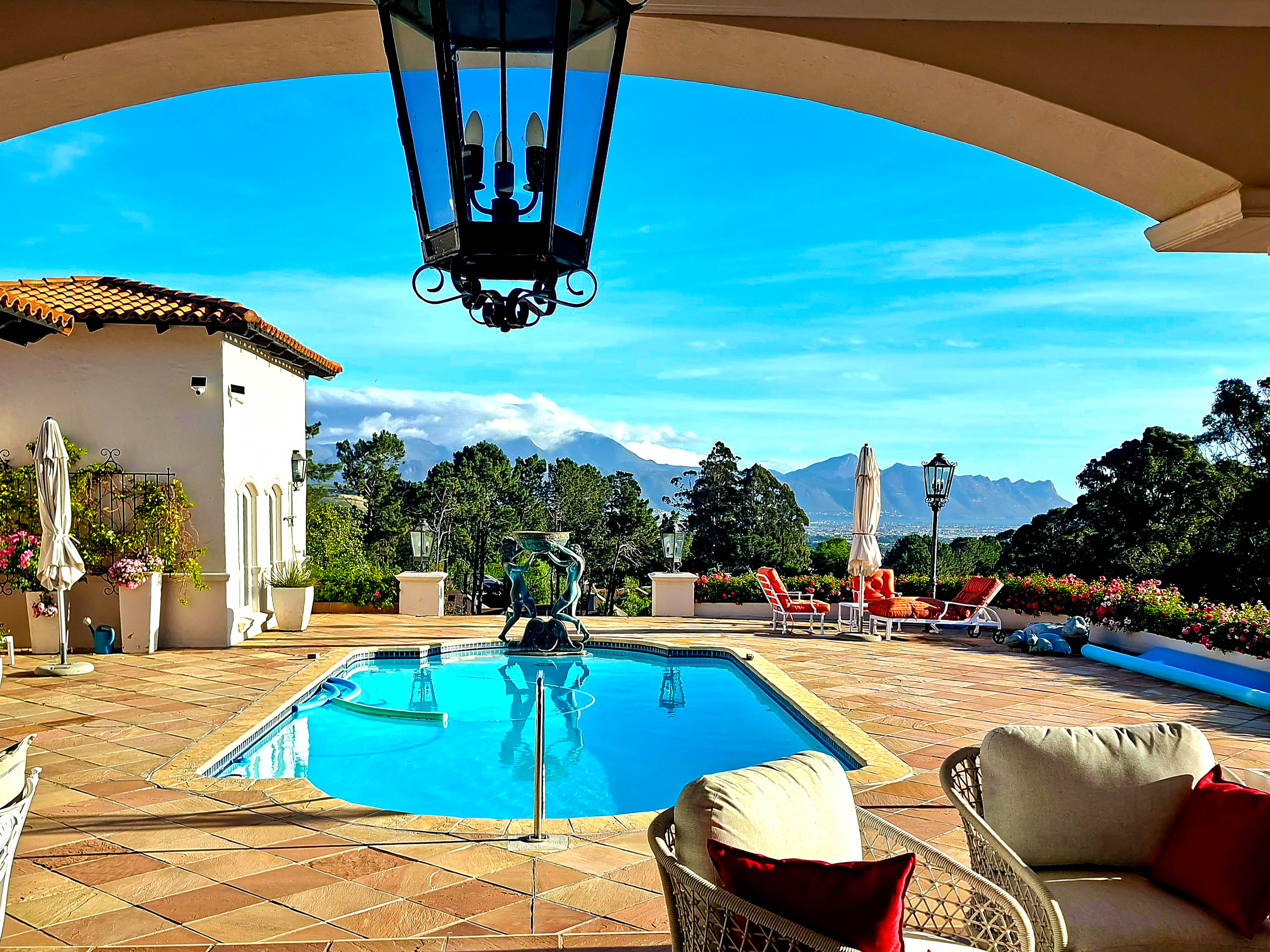 Im großen Garten befindet sich eine Boule-Bahn, die auch für Badminton oder Softtennisball genutz werden kann. Der große 8,5 x 4,5 m Pool ist auf Salzwasserbasis und kann jederzeit benutzt werden.